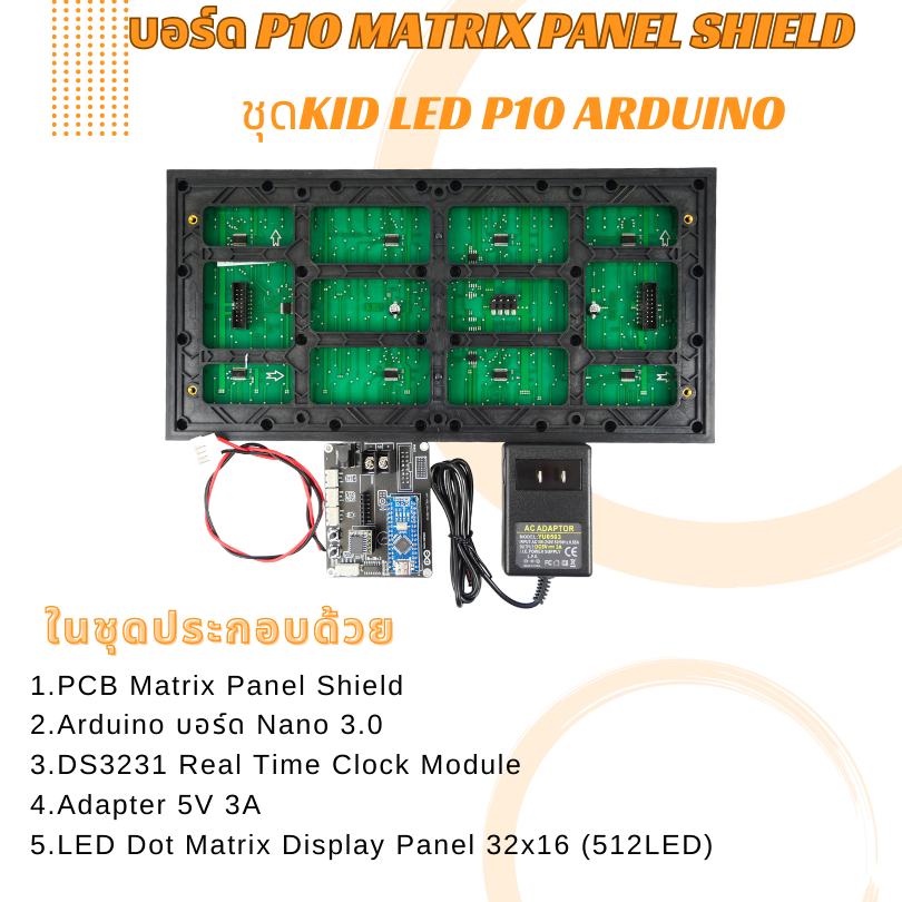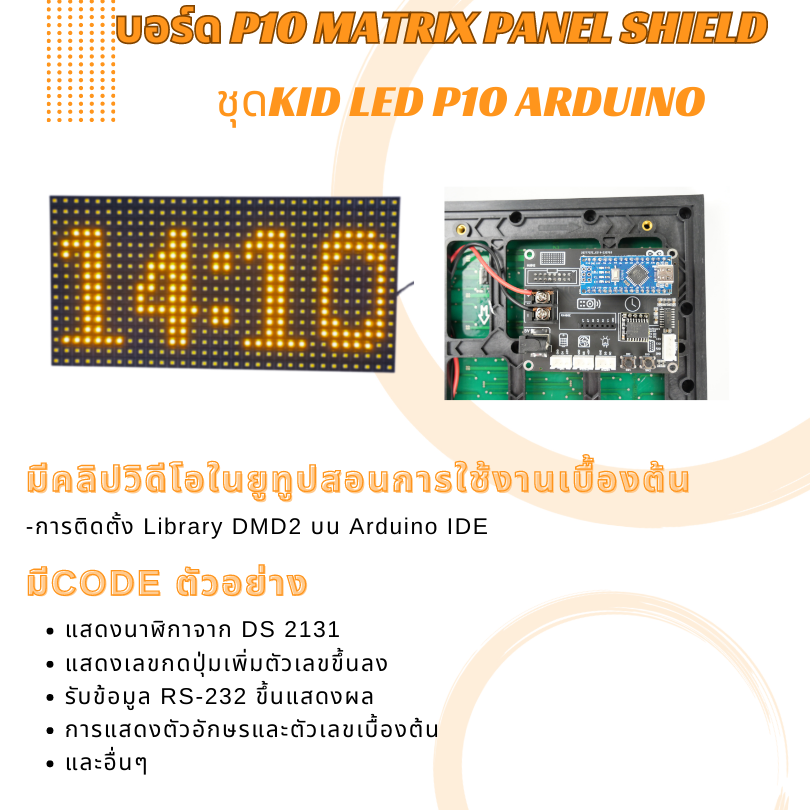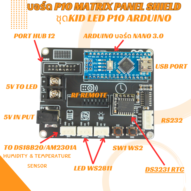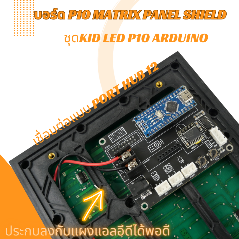 มีพอร์ตเชื่อมต่อ female header สำหรับเชื่อมต่อ panel LED P10 ด้านล่าง